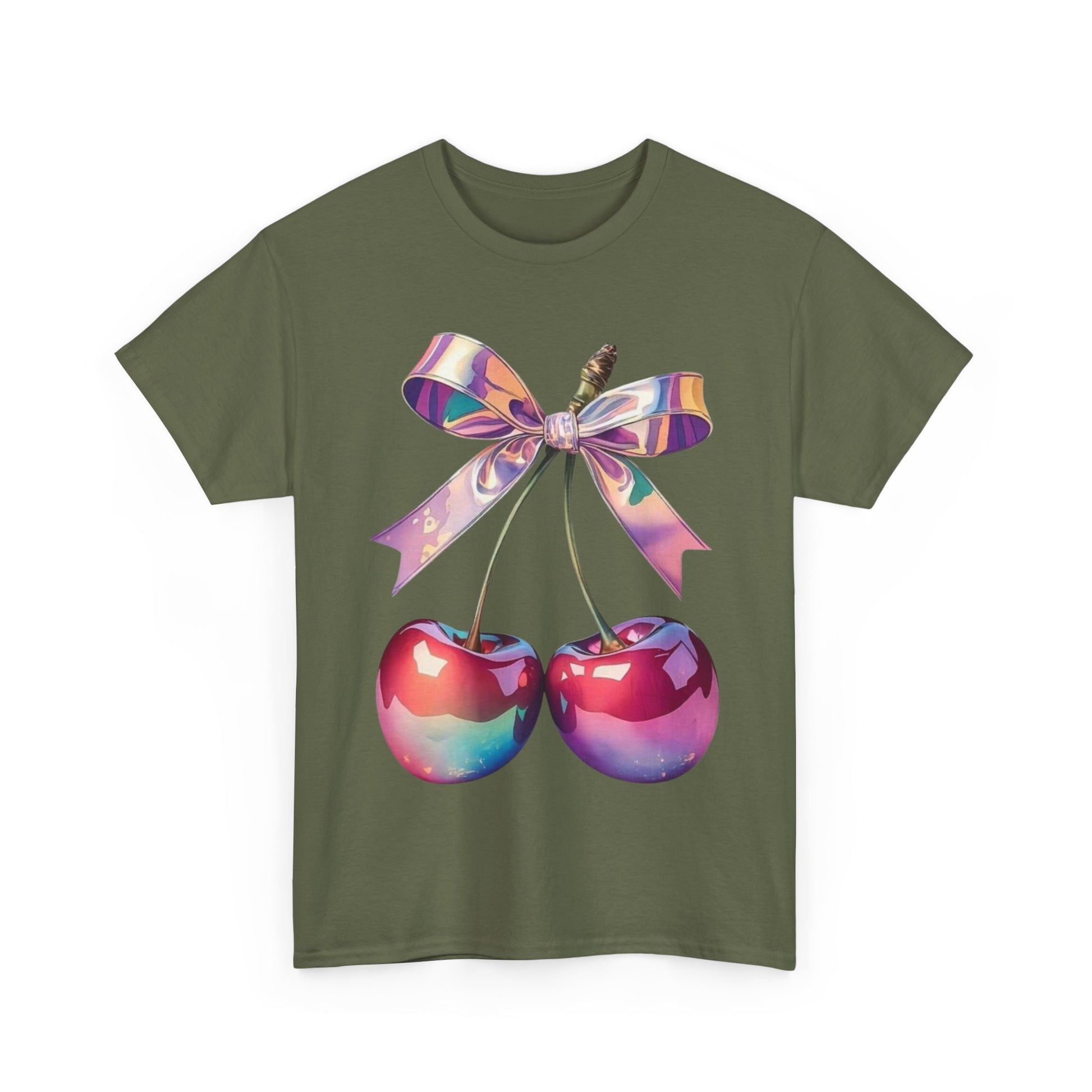 Sweet Cherry Ribbon Tee, Cute Casual Wear, Gift for Fruit Lovers, Summer Vibe Shirt, Festival Outfit, Unisex Graphic T-Shirt